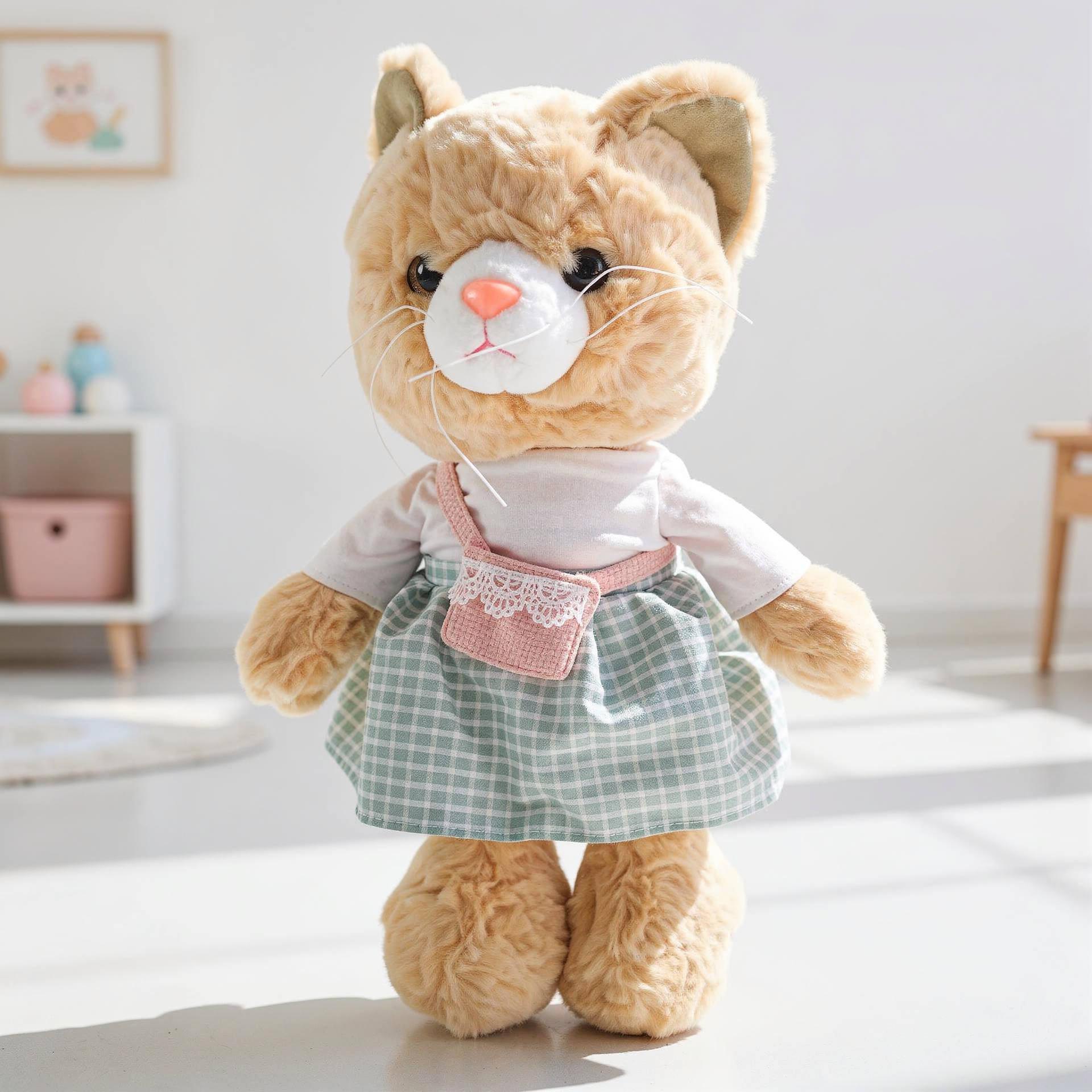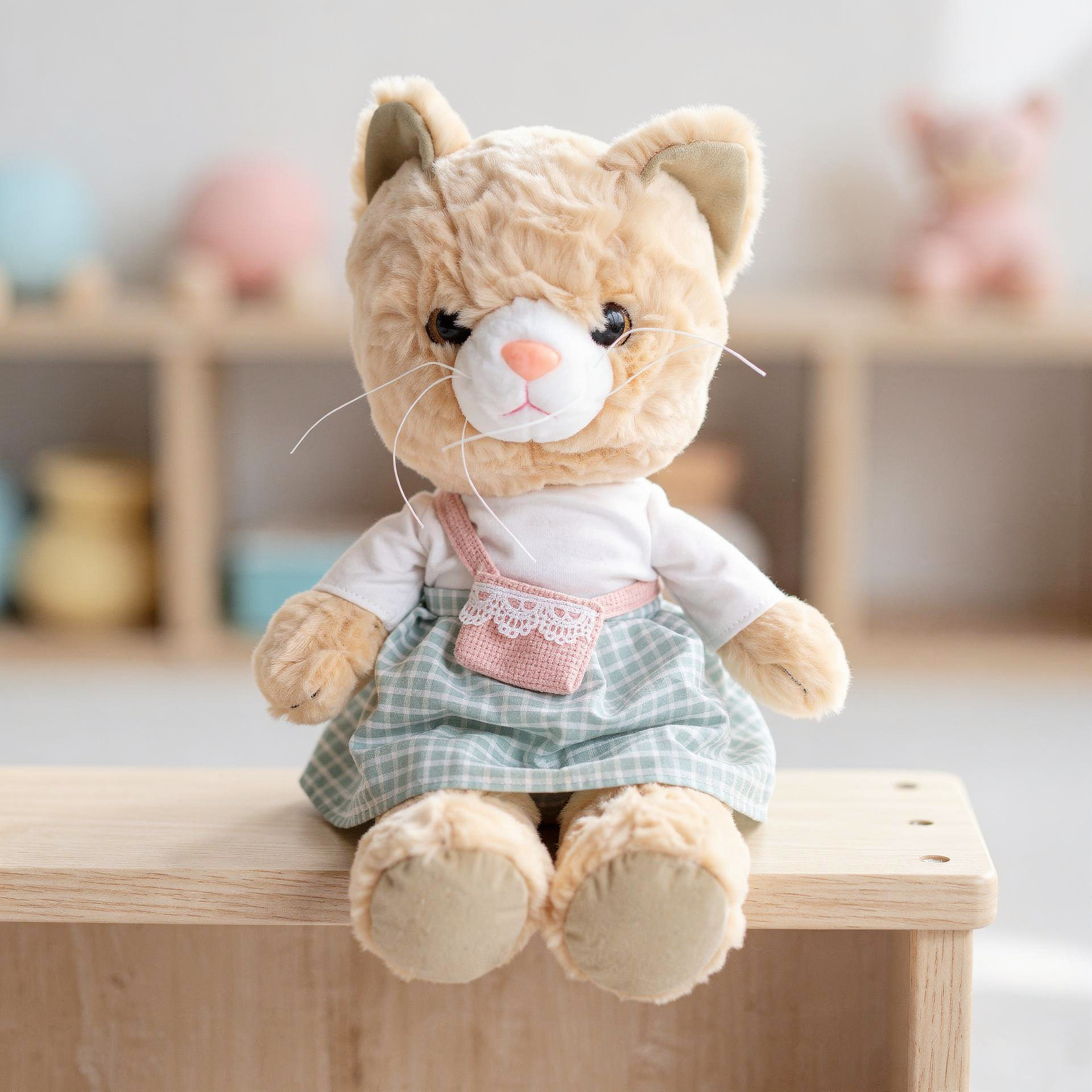 یه گربه پولیشی خوشگل و شیکپوش با دامن رنگی! این عروسک گربه با اون ظاهر ناز و لباس قشنگش، یه هدیه فوقالعاده برای بچههاییه که عاشق گربهان.