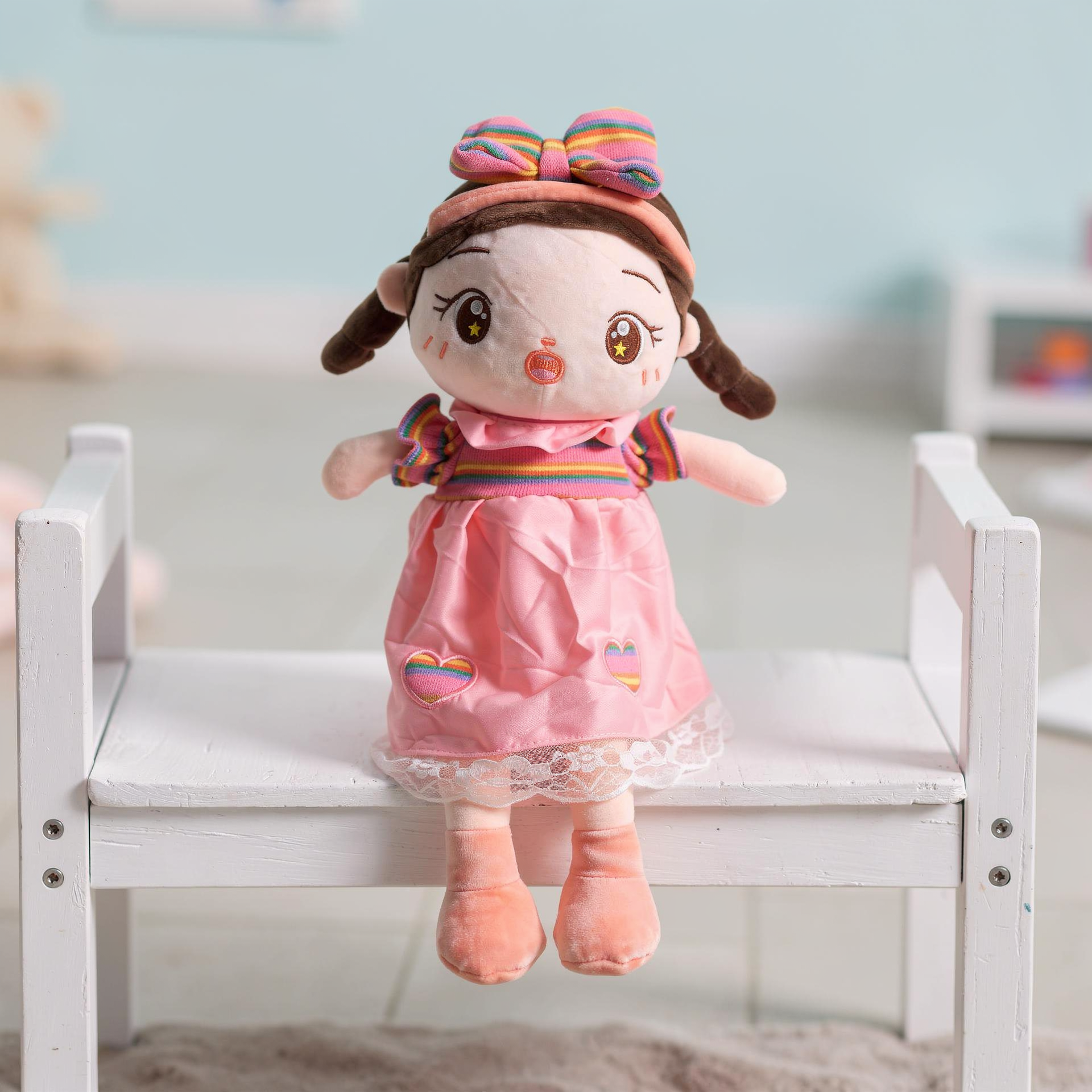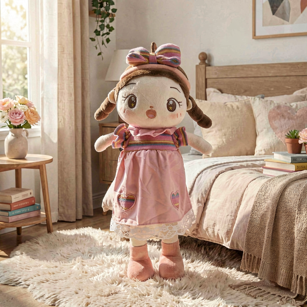 یه عروسک دخترانه فوقالعاده زیبا با پاپیون رنگی روی سرش! این عروسک با لباس خوشگل و چهره معصومش، بهترین دوست دختر کوچولوی شماست.